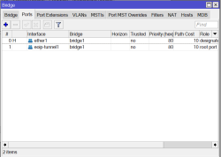 La modalità client del device WiFi6 può essere impostata nella sola modalità "station". Questo implica che il ponte radio non fa passare i pacchetti L2. Per ovviare a questa condizione ed ottenere un ponte radio "transparent bridging" è necessario assegnare degli ip alle interfacce wireless e non includerle nei bridge. Poi creare una interfaccia eoip per ogni apparato e collegarlo al suo reciproco. A questo punto basterà inserire l'interfaccia eoip dentro il bridge per ottenere il passaggio delle trame L2.